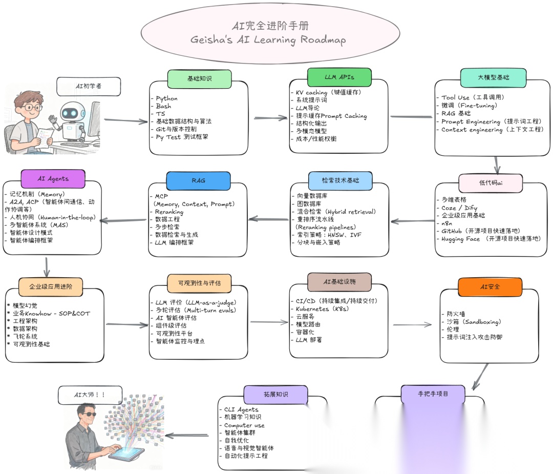作者能力有限,借此希望为想学习AI的朋友们提供一条系统性的学习路线,快速入门,拥抱AI!