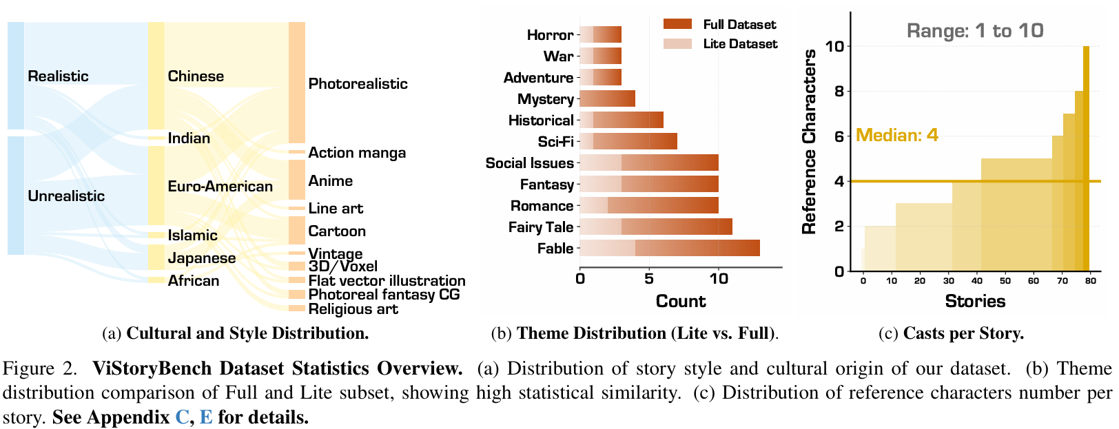 数据集包含344个角色、509张参考图,覆盖10种视觉风格(如日系动漫、写实电影、绘本风等)。这相当于把“叙事传播”拆成可标注、可复核的单位,让评测不再停留在“感觉像不像”。