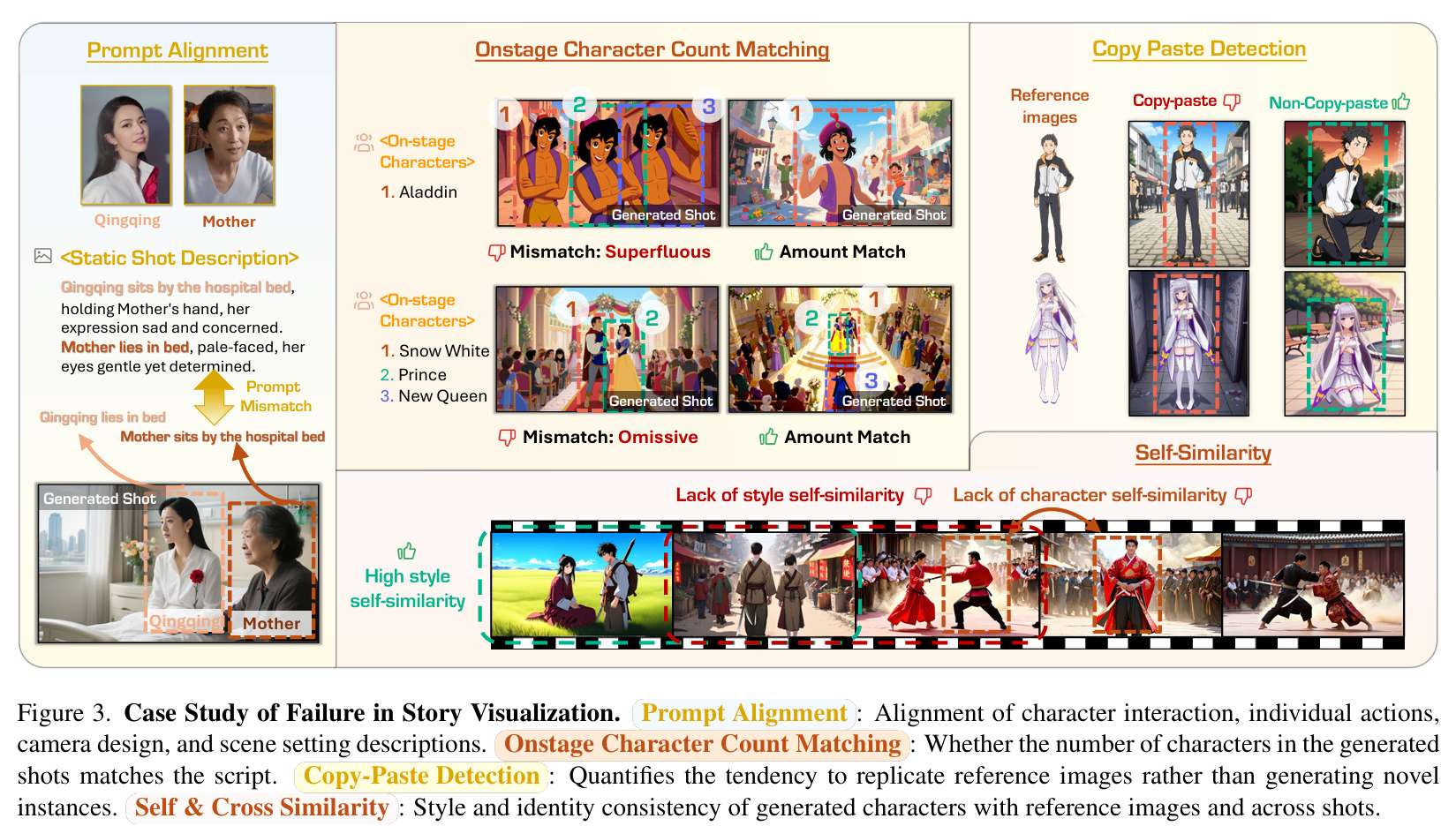 很多模型为了维持角色一致性,直接把参考图“贴”到生成结果里(或高度复用其局部特征),牺牲了剧情所需要的动作、表情变化。更麻烦的是:传统指标往往会把这种“作弊式一致性”当作能力提升,从而让评测结论失真。
