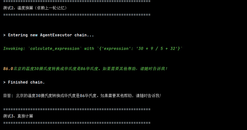 # result = agent_executor.invoke({"input": "那温度转成华氏度是多少?"}) # 会记住30度