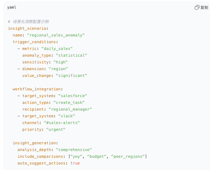 在零售补货员的日常检查中、在工厂设备维护工的工作清单中、在金融风控师的监控屏幕上——自动化洞察不再是独立的技术功能,而是工作流程的自然延伸。这种无缝集成减少了认知负担,缩短了决策延迟,最终让企业能够以前所未有的速度响应市场变化。