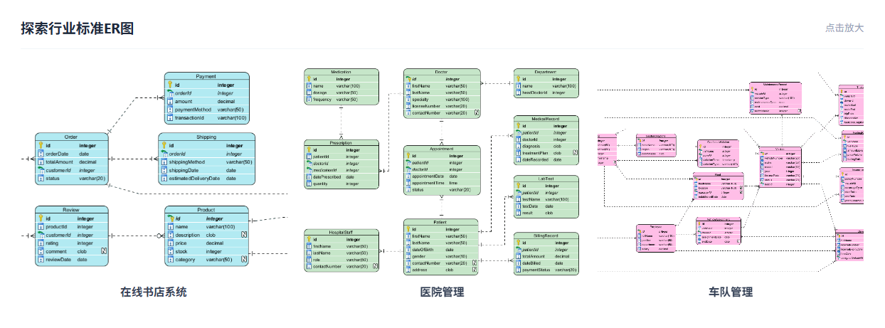 - ERD (实体关系图): 用于展示数据库中实体(如用户、产品)及其相互关系的视觉模型。它是数据库设计的蓝图。