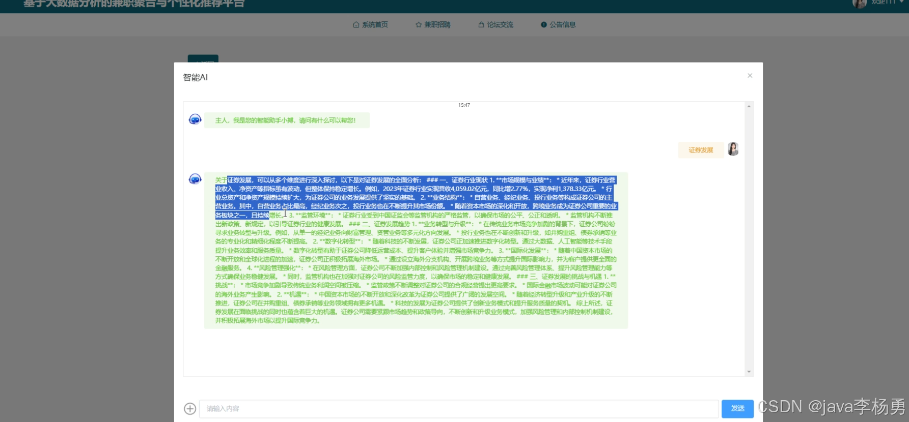 基于大数据Hadoop+智能AI大模型+SpringBoot的兼职聚合与个性化推荐平台的设计与实现(精品源码+精品论文+上万数据集+答辩PPT)