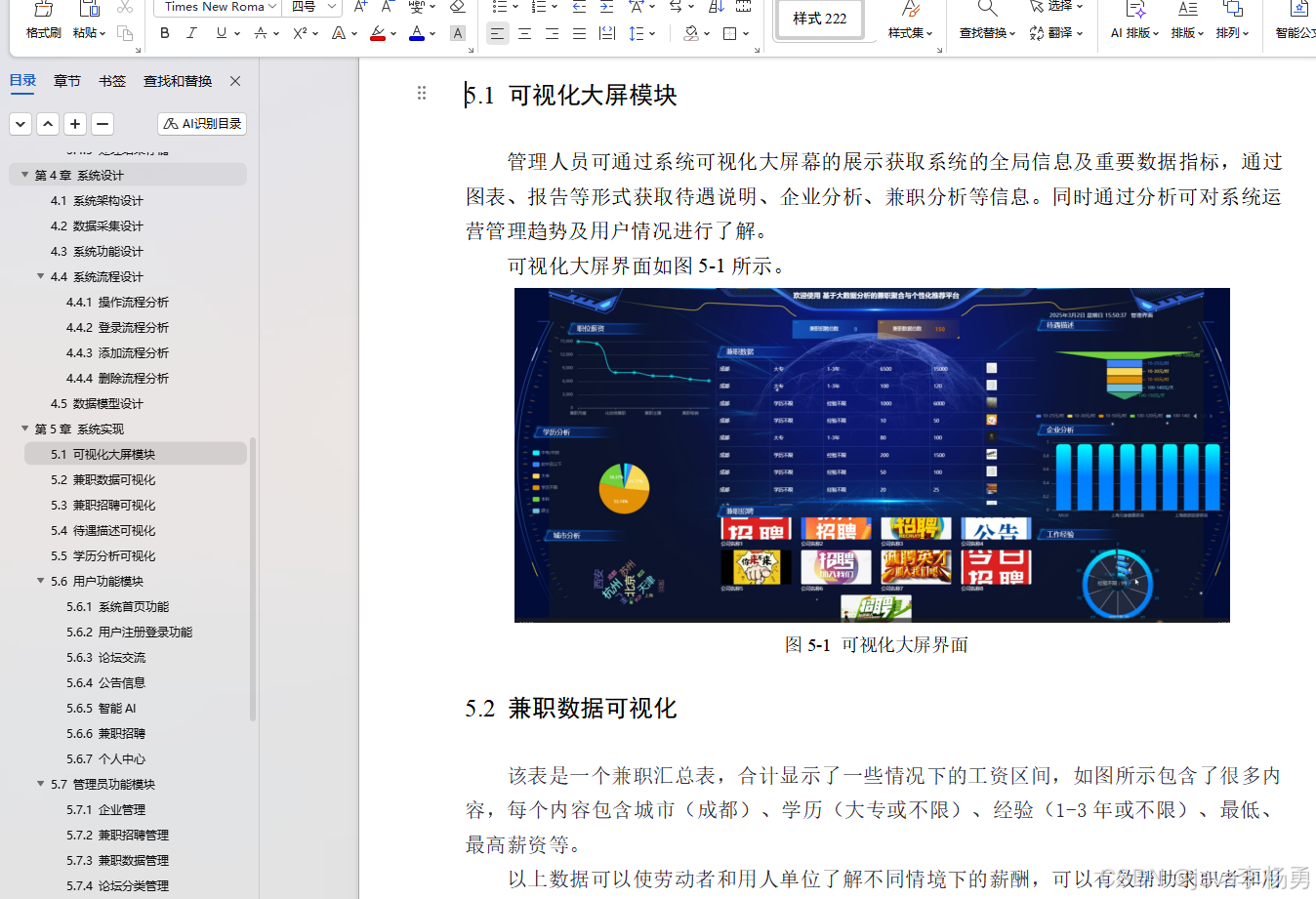 本文主要研究了基于大数据分析的兼职聚合与个性化推荐平台的设计与实现。系统通过对当前兼职推荐领域的国内外研究现状进行深入分析,结合实际需求,提出了具体的功能设计与技术实现方案。平台采用Python语言和Django框架进行后端开发,前端交互使用Vue技术,数据存储则以MySQL数据库为核心。在系统设计过程中,详细阐述了架构设计、功能模块划分及数据库表结构设计,确保了系统的高效性与可扩展性。系统实现涵