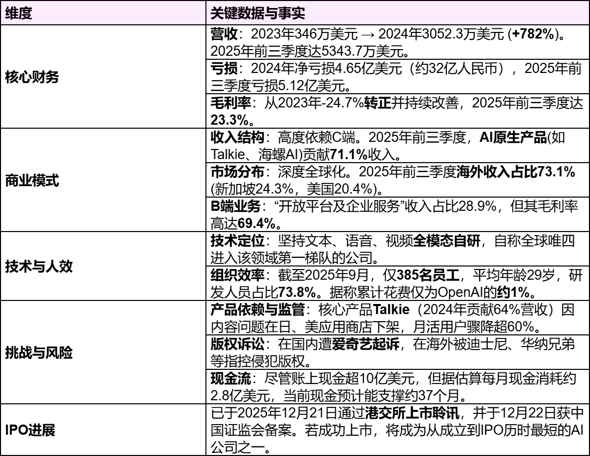 产品依赖与监管风险:核心收入曾高度依赖Talkie,而该产品已在日、美等地下架,导致月活大幅下滑,凸显了单一C端产品的脆弱性及全球运营的合规挑战。