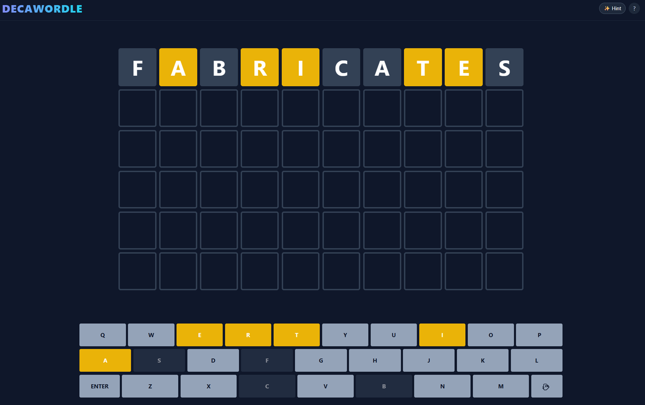 为了好玩,我仅用两个小提示就成功构建了一个完整的Wordle克隆版(只是使用10字母单词):