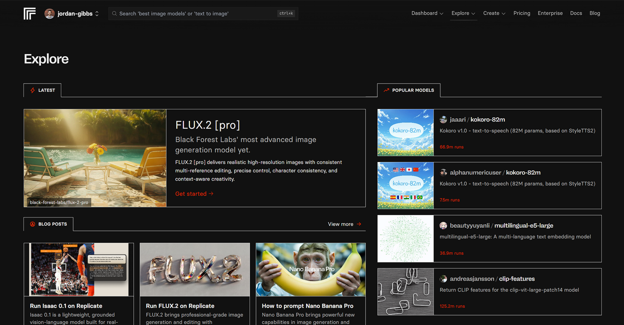 Replicate本质上是一个汇集了所有最佳生成式AI工具的库。Replicate上有数千个AI模型,而且它们都非常容易运行。