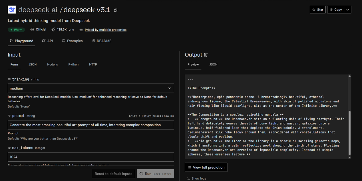 首先,假设我想用语言模型为AI图像生成器生成一个提示词。在研究了所有顶级模型后,我选择了Deepseek: