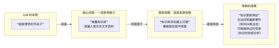 这就是LLM的现状:思考能力一流,但信息来源有限。