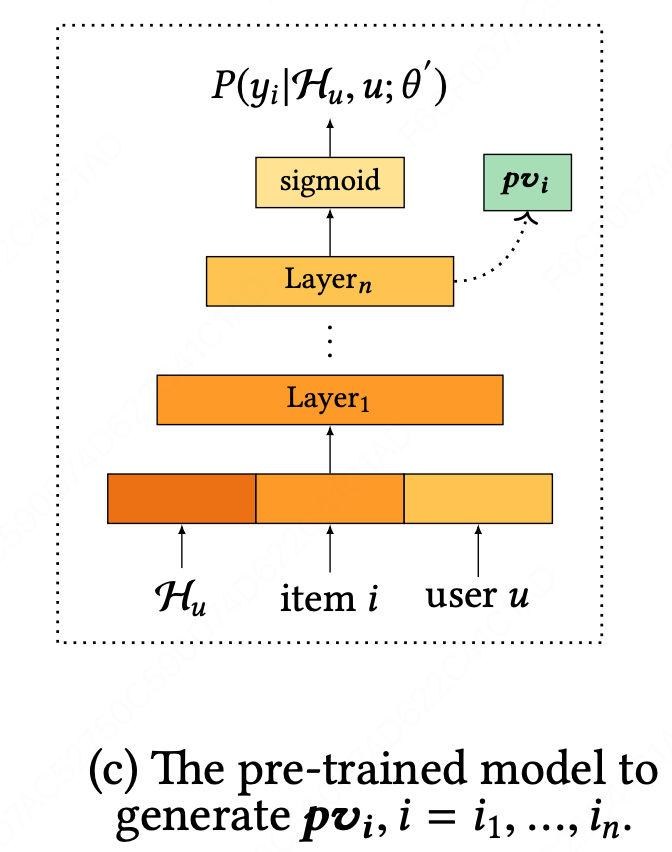 上图c展示了一个可能的预训练模型的网络结构,如FM、FFM、DeepFM、DCN、FNN、PNN等其他通用的模型也可以用来当作生成PV矩阵的替代模型。