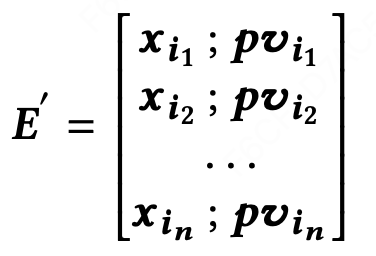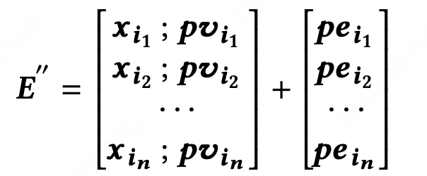 最后,我们使用一个简单的前馈网络将特征矩阵E′′∈Rn×d(feature)+d(pv)转化为E∈Rn×d,其中d是编码层每个输入向量的潜在维数。E可表示为如下方程式。