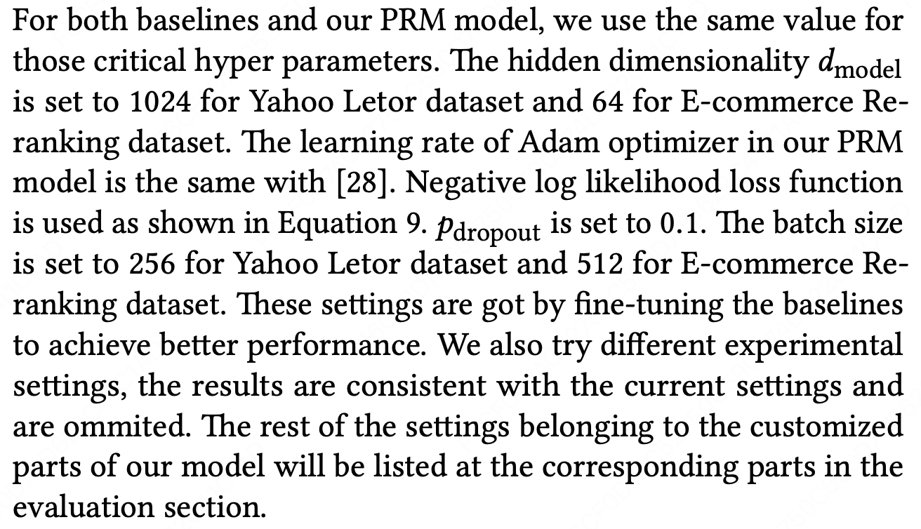 - 个性化矩阵PV,为了引入user-item交互信息,使用一个额外的预训练模型输出的个性化矩阵,d_pv维。(训练PV矩阵的直接方法是使用重排的loss将PV融入到PRM模型中做端到端的训练,本文采用的方式是使用一个额外的预训练的神经网络,个人理解这个PV矩阵应该不是必须。)