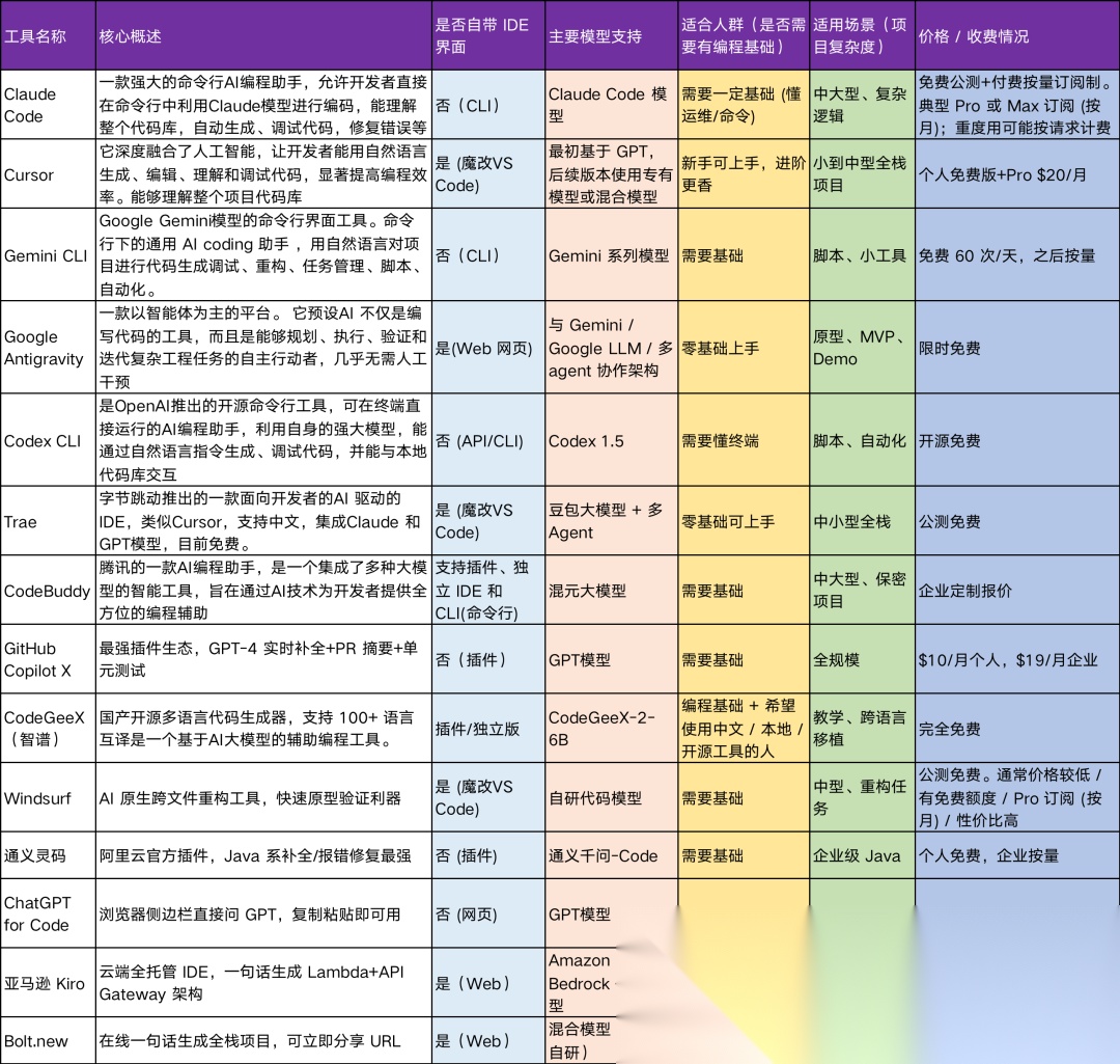 Trae:字节跳动出品的AI 原生编辑器。内置了 Claude和 GPT等编程模型。它具备全工程上下文理解能力,能跨文件自动修改代码,且目前阶段完全免费。