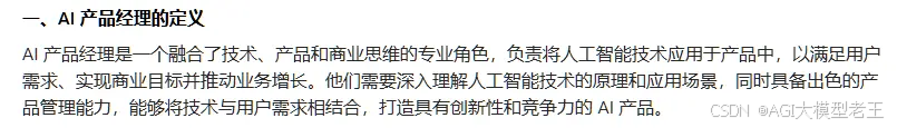 我们先来看看大模型对于AI产品经理的定义: