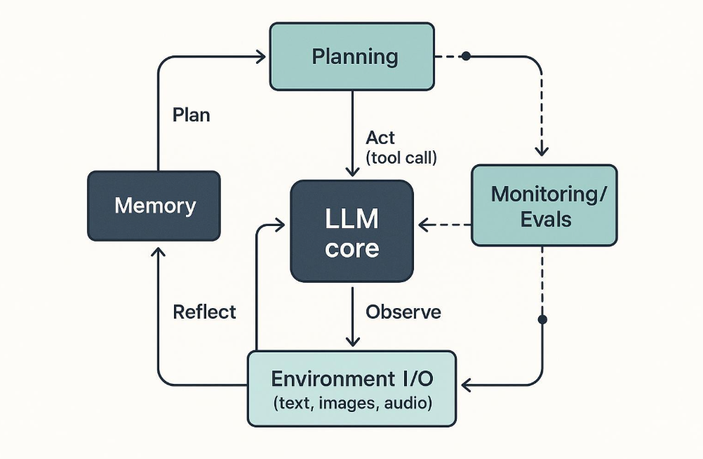(图:AI Agent 典型架构,展示工具、记忆、规划循环)