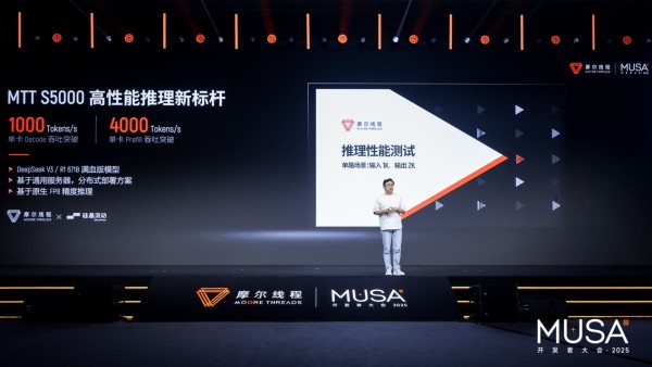 在现场测试下,单卡Prefill吞吐突破4000tokens/s;单卡Decode吞吐突破1000 tokens/s。这些结果意味着两点:其一,目前本土GPU在MoE场景下的算子调度、显存管理与通信协同已进入可用区间。其二,MUSA软件栈对复杂模型结构的适配,已经从“能跑”迈入“跑得好”。