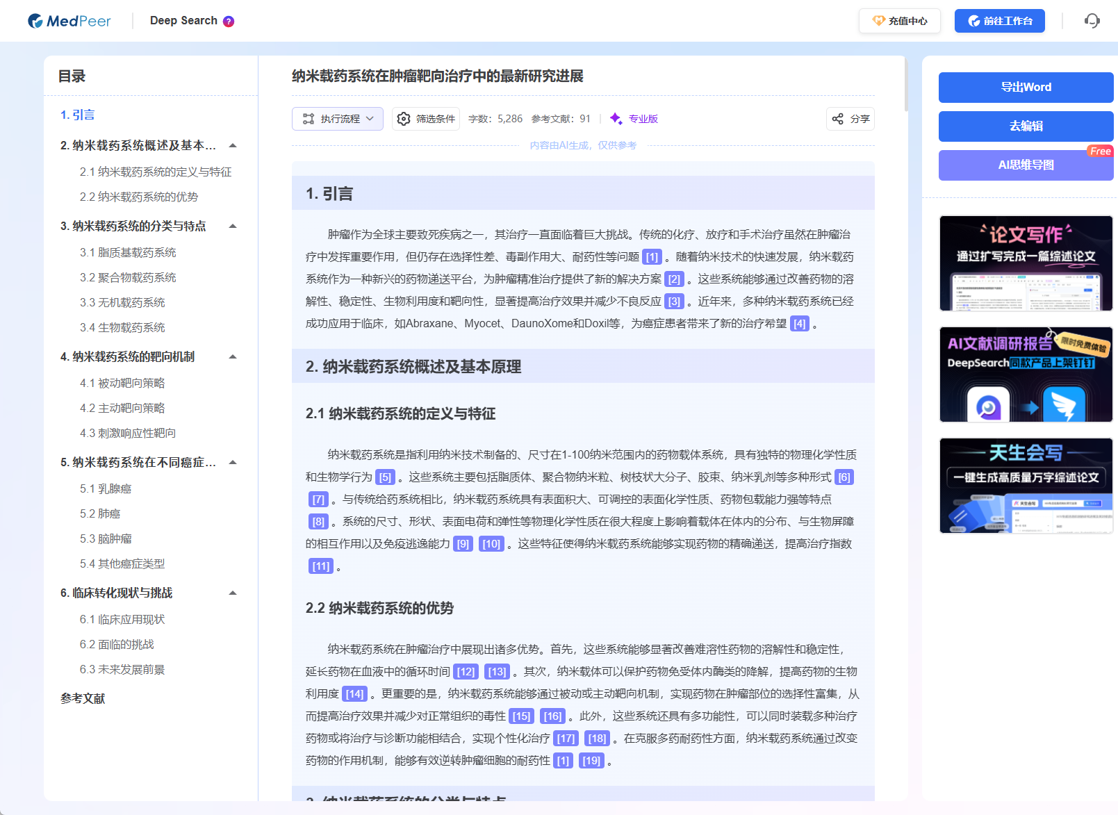 - 你的问题:“纳米载药系统在肿瘤靶向治疗中的最新研究进展”