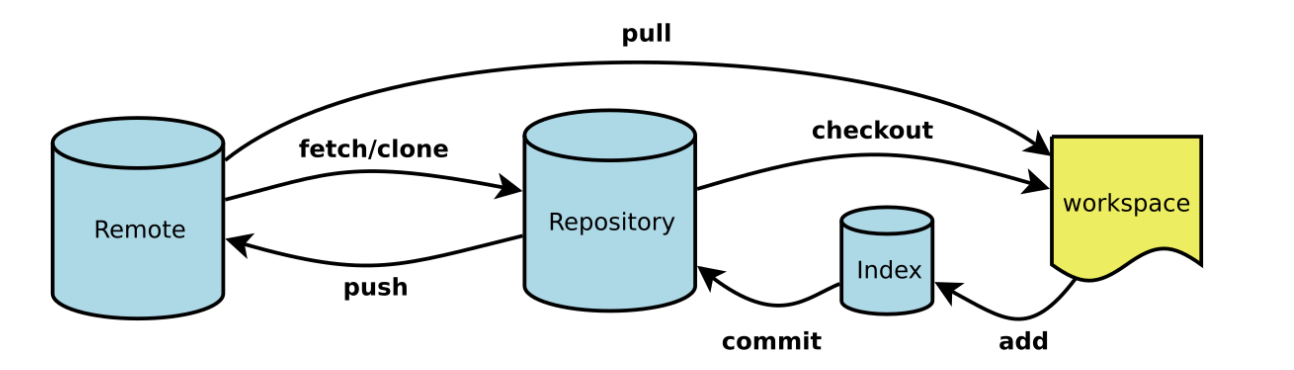 数据仓库(Repository):记录文件或目录状态,存储内容修改历史;包括远程数据库(专用服务器,多人共享)和本地数据库(用户本地机器配置,个人使用)。