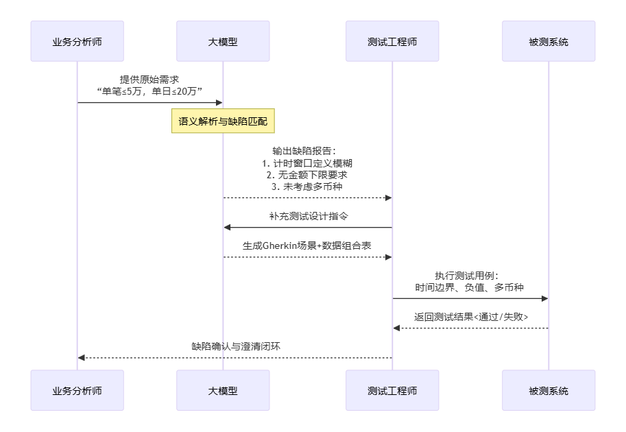 逻辑矛盾 → 生成覆盖矛盾点的“验证性用例”,确保系统行为符合最终确定的业务规则。