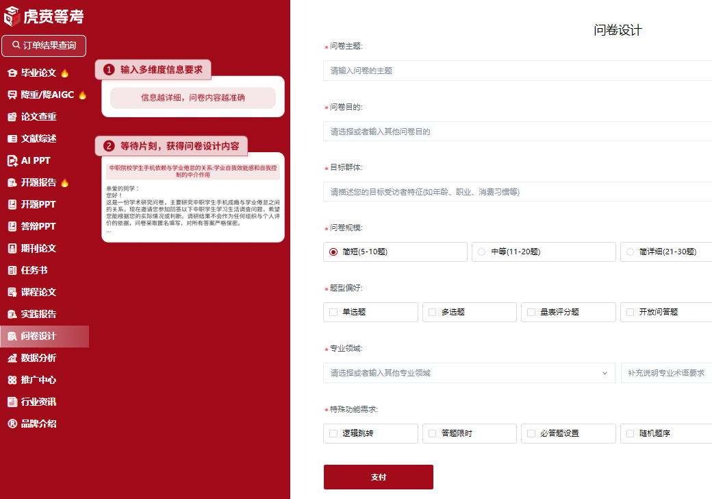 - 适配不同调研规模:无论是课程论文的小样本调研(50-100 份),还是毕业论文的大样本数据收集(500 + 份),都能灵活调整问卷长度、投放渠道;