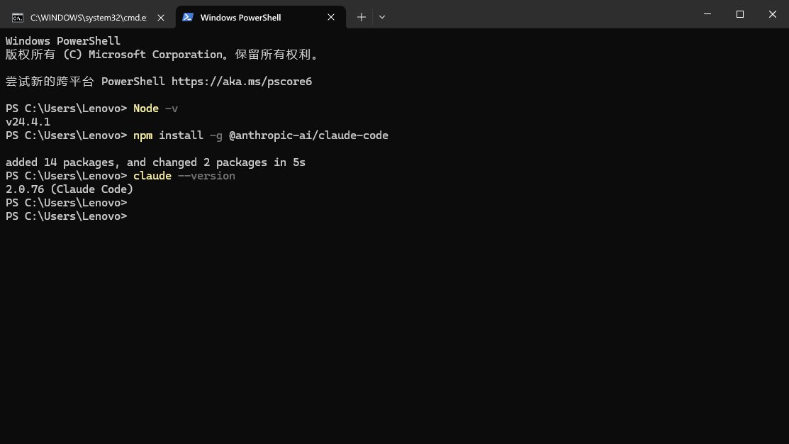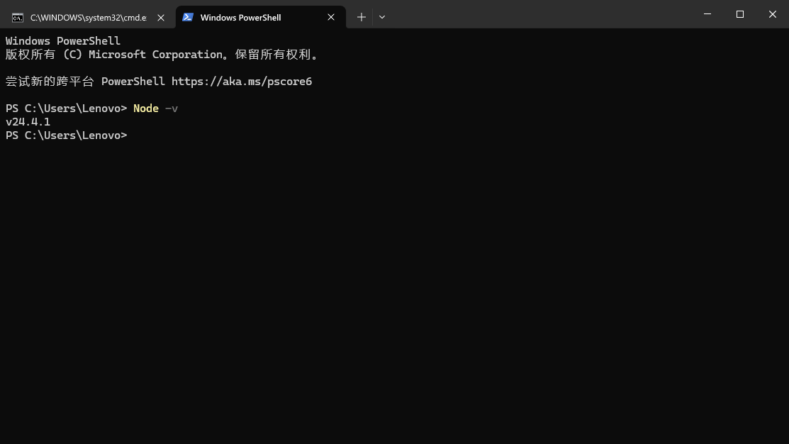 首先需要Nodejs环境,我这里是v24.4.1