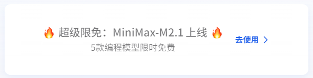 GLM-4.7 与 MiniMax M2.1 分别代表了当前国产模型在工程交付能力 与 Agent 长期运行效率 上的两种成熟路线: 前者通过可控推理与工具协同,强化复杂工程任务的一次性交付; 后者依托高效 MoE 架构与多语言优化,面向 AI-native 组织的持续 Agent 工作流。 两者都不再以单轮生成质量为核心,而是直指真实复杂工程场景中的长期稳定工作能力。可以看到两大强力模型已经上线并且免费!