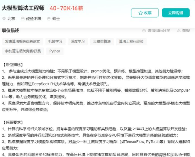 :大模型领域技术更新迅速,算法工程师需要密切关注国际学术会议(如 NeurIPS、ICML、CVPR、ACL 等)和顶尖研究机构的最新研究成果,及时将前沿技术应用到实际工作中,并具备创新思维,能够提出新的算法和解决方案,推动大模型技术的发展。