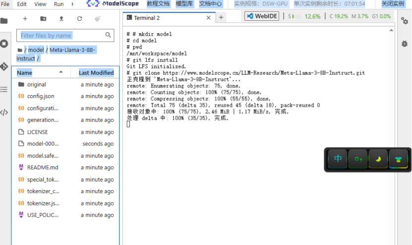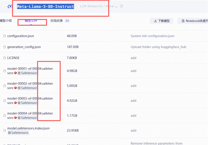 选择并下载模型:终端创建model文件夹,下载可以训练的模型,魔塔社区-模型库,搜索Meta-Llama-3-8B-Instruct