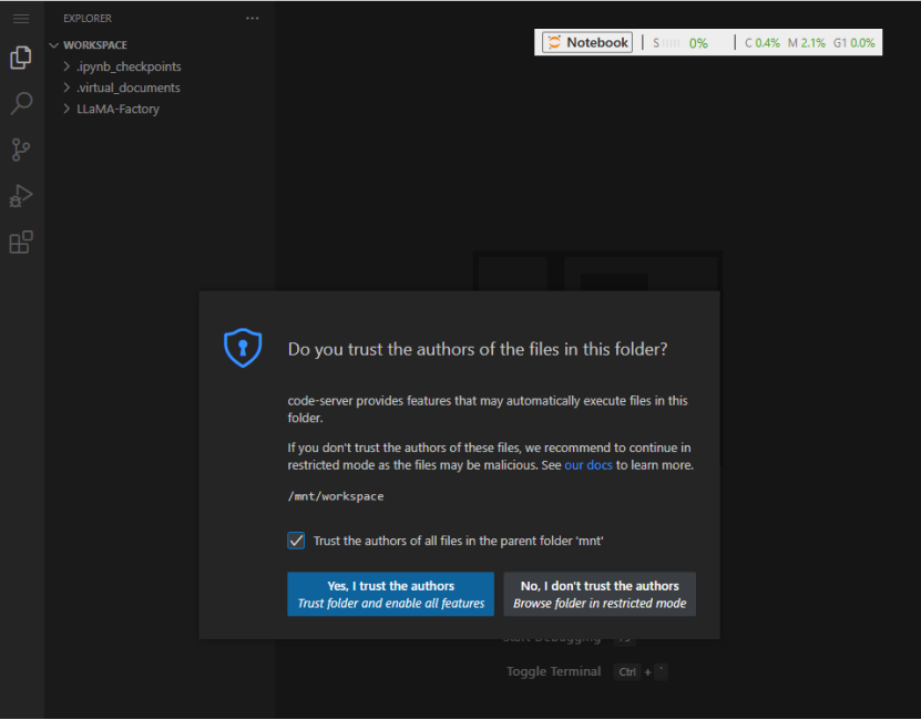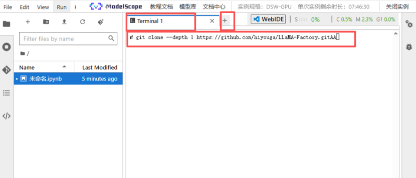 我的Notebook–点击+选择Terminal中断-输入以下命令: