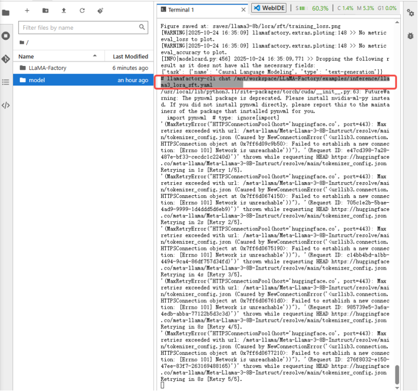 llamafactory-cli chat /mnt/workspace/LLaMA-Factory/examples/inference/llama3_lora_sft.yaml