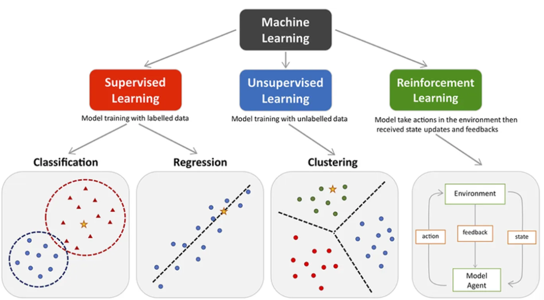 监督学习从带标签的数据中学,常用于价格预测、图像识别、邮件分类等。无监督学习处理没标签的数据,用来发现隐藏模式或分组,比如客户分群、趋势挖掘。强化学习则让智能体通过试错和奖励来学习,常用于机器人、游戏和自动化控制。