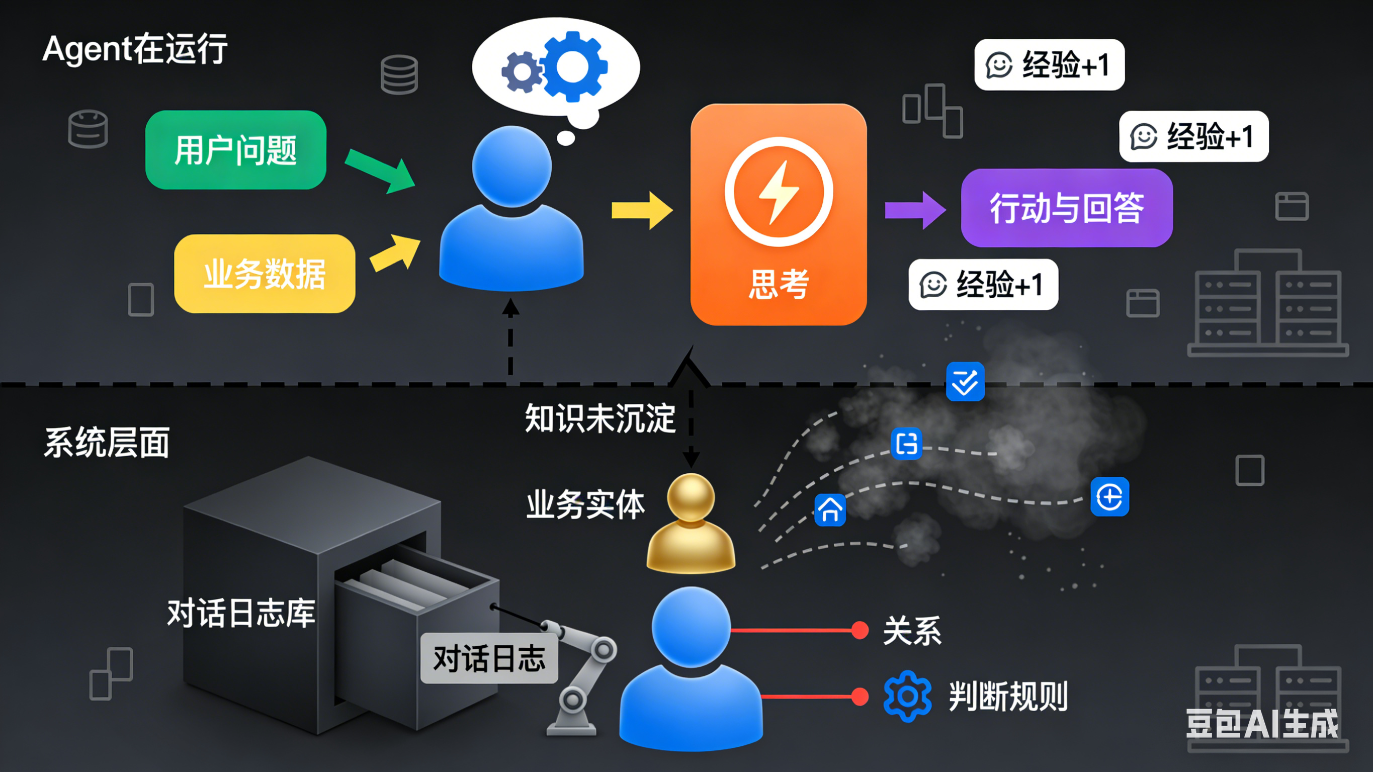 于是系统进入一种很危险的状态:Agent 在积累经验,但系统在不断遗忘。遗忘规则从哪里来,遗忘哪些判断是高频的,遗忘哪些逻辑已经在事实中被反复验证。