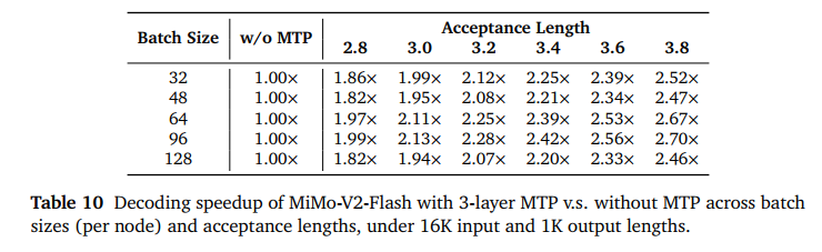 MiMo-V2-Flash 原生集成了 MTP 模块,这不仅提升了训练质量,更成为其“闪电”速度的秘密 。