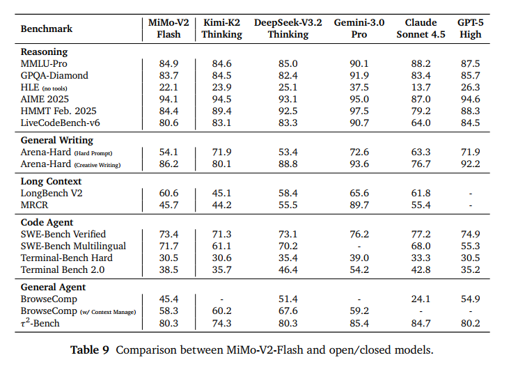 先说核心结论,MiMo-V2-Flash性能全面对标“Thinking”系列。