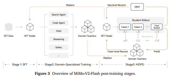 MiMo-V2-Flash 的训练不是一蹴而就的,而是分为三个“升级”阶段: