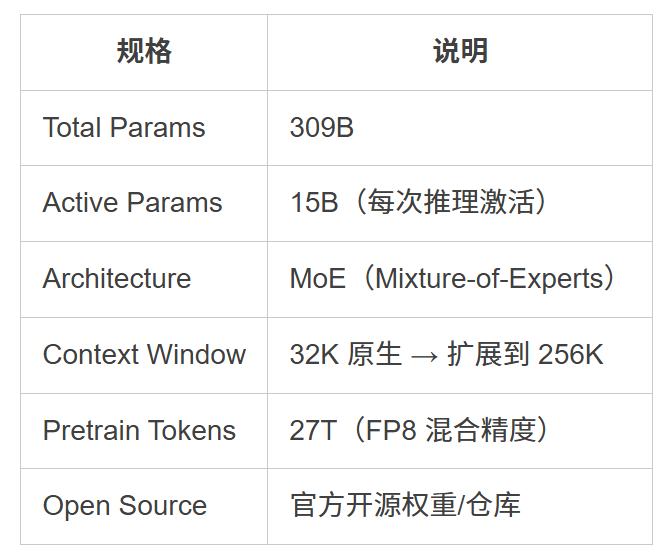 MiMo-V2-Flash 是小米 MiMo 团队发布的 MoE开源大模型,主打两件事:推理/Agent 能力要强,同时推理要快、成本要低。它不是“把模型做小”,而是通过 MoE 让每次推理只激活少量参数,从而在保持质量的同时提升吞吐。。它代表着小米进入竞争激烈的开放 LLM 领域的重要一步,将自己定位为 DeepSeek V3.2 和 Claude Sonnet 4.5 等模型的高性能且高效的替代品。