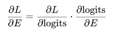 在LLM中,嵌入的梯度是通过反向传播中的链式法则计算的: