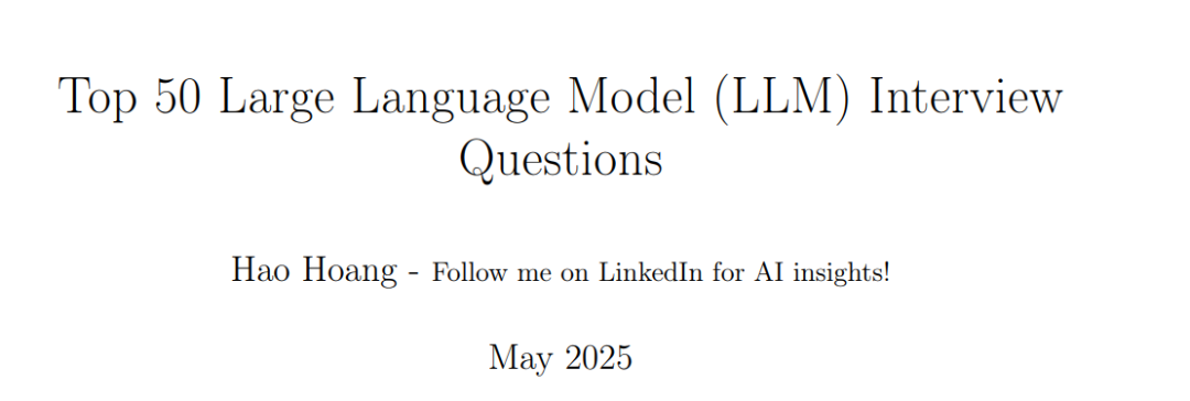 大型语言模型(LLMs)正在彻底改变人工智能,使从聊天机器人到自动化内容创建等应用成为可能。本文档汇总了50个核心面试问题,经过精心筛选,旨在加深您对LLMs的理解。每个问题都配有详细答案,结合了技术见解与实际示例。