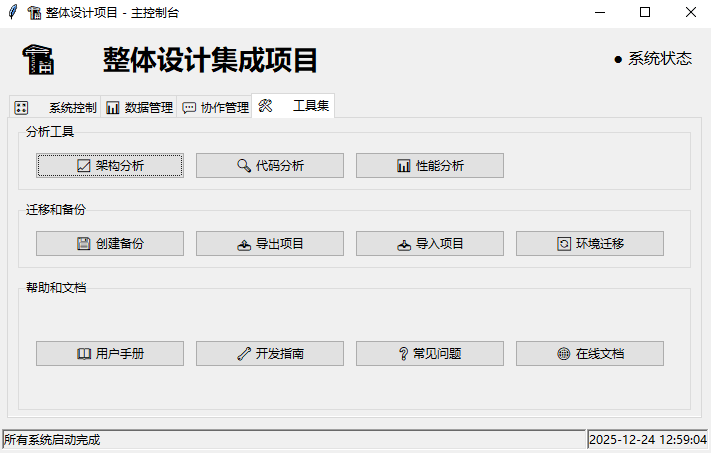 通过今天的整合工作,我们成功地将零散的程序、文档、设计和理念整合成了一个完整的"整体设计"开发环境。这个项目不仅是一个实用的工具,更是一个理论创新和工程实践相结合的典范。