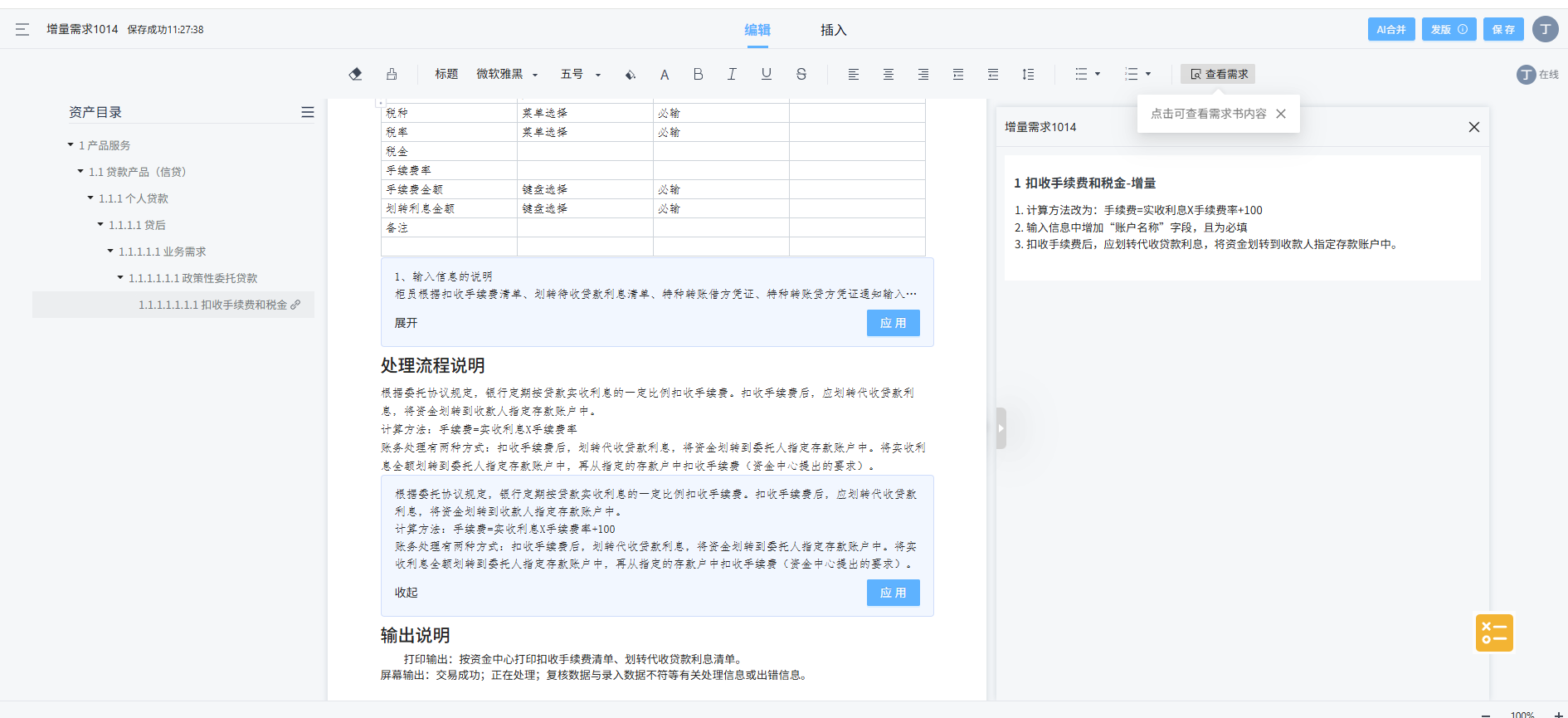 | ✍️ 内容优化与精炼 | - 内容优化:提供续写、缩写、润色、纠错等功能,提升需求描述的清晰度和规范性。 - 语言转换:将业务语言与技术语言进行双向转换,消除沟通鸿沟。 |