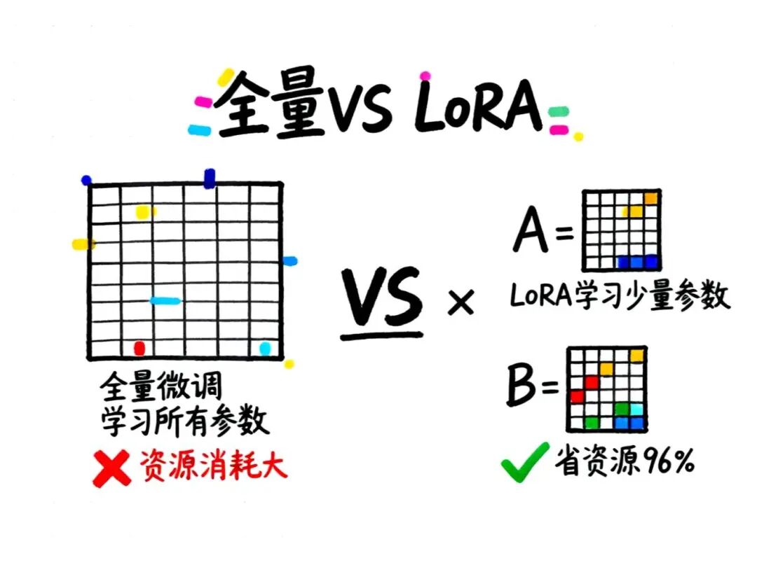 今天我们要讲的LoRA(Low-Rank Adaptation)技术,能让你用不到4%的资源完成微调,效果还不差!这是怎么做到的?让我们从微调的本质说起。