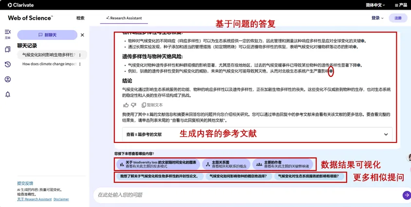 Web of Science 研究助手是一款学术型生成式人工智能工具。主要基于 Web of Science 平台,以Web of Science 核心合集引文索引数据为底层支撑,深度整合先进的人工智能技术,助力科研人员在海量学术资源中快速定位关键信息,实现科研文献价值的最大化。