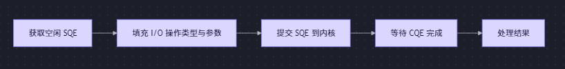 用户填充 SQE(Submission Queue Entry)后,可通过 memory barrier + flag polling 通知内核(