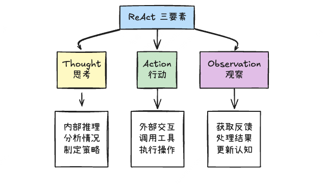 要理解 ReAct,先掌握它的三个核心组成部分,缺一不可:
