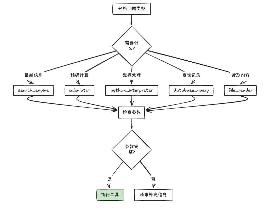 - 核心优势:通过工具弥补模型局限,获取实时、准确的外部信息,解决复杂问题