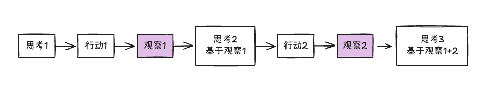 - ✅ 基于观察结果动态调整:每一步行动的结果都会作为下一轮思考的依据,形成反馈