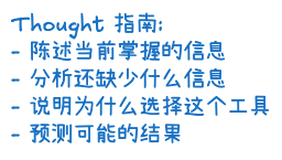 在提示词中明确告诉模型“该怎么思考”,比如要求模型先分析任务是否需要工具、需要哪种工具,再制定行动计划。