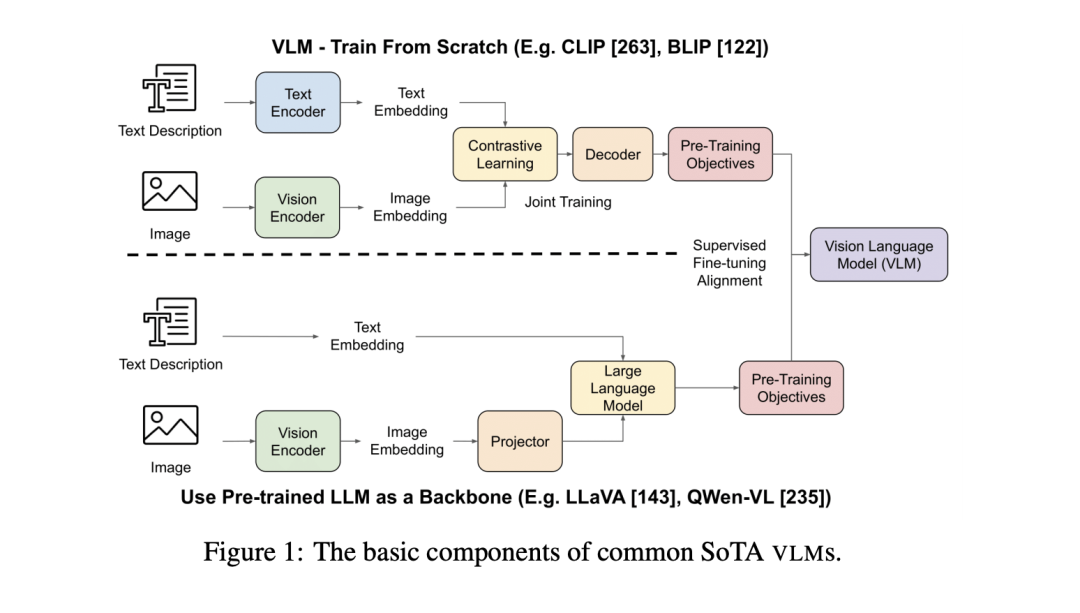 VLM也遵循预训练—后训练的训练框架,但在预训练上与 LLM 方式不同。VLM的预训练方式通常采用双 Transfomer 架构。具体来说,就是用一个Transformer编码器来处理文本信息,同时用另一个Transformer编码器(通常是ViT架构)来处理视觉信息。最后,通过一个“融合模块”(例如跨模态注意力机制),将各自 Transfomer中提取出的语言特征和视觉特征进行深度的交互与对齐,从而让模型建立起语言与视觉之间的关联。