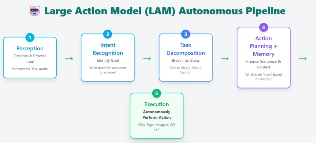 LLM 擅长生成文本,而 LAM (Large Action Models) 旨在将意图转化为行动。它们不仅是回答问题,而是作为“Agent”直接与现实世界或数字界面交互。