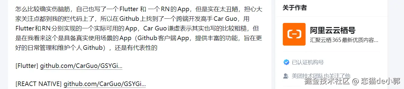 另外过去的时候,闲鱼就曾用过 GSYGithubApp 的 React Native 版本和 Flutter 版本做过一些性能对比测试: